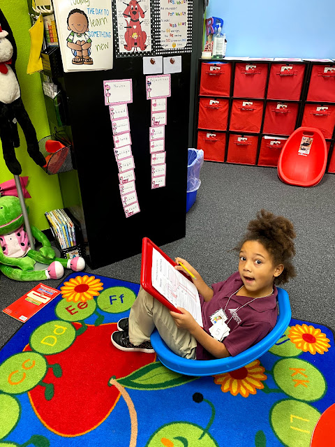 The kiddos below are reading books about flamingos on the Epic app.